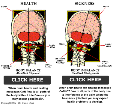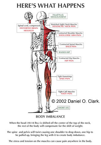 Have a look at these diagrams created by Dr. Daniel O. Clark. They clearly show what happens to the body due to a head/neck misalignment.