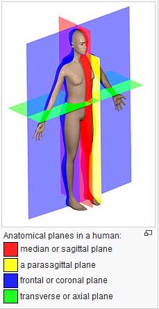 The sagittal plane is part of what is called the ‘anatomical plane’. It’s used to describe location and movement of the body. The sagittal plane divides the body left and right (see below).